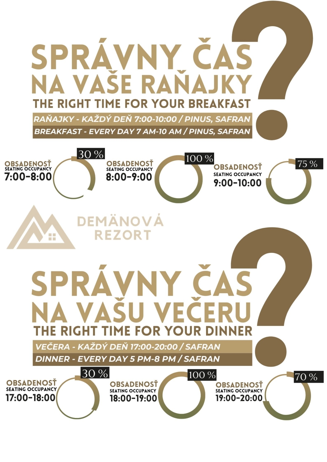 Vaše pohodlie je pre nás prioritou, preto Vám odporúčame navštíviť našu reštauráciu počas raňajok/večerí v čase, keď je najmenej vyťažená.